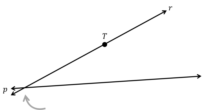 Garis r memang melewati T, tetapi tidak sejajar dengan p. Akibatnya, r dan p pasti berpotongan.