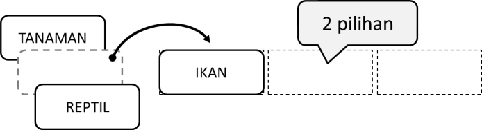 Kemudian, setelah kita menempatkan satu kertas pada posisi pertama, hanya tersisa 2 pilihan bagi posisi kedua.