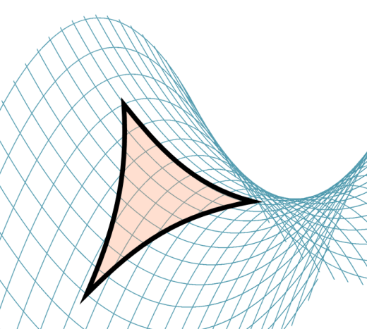 Dalam bidang hiperbolik, sudut dalam segitiga kurang dari 180°.