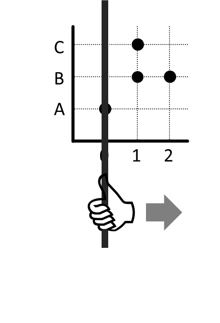 Pada contoh di atas, ketika garis vertikal diletakkan di 1 ternyata garis melalui dua titik, bukan hanya satu titik. Ini melanggar syarat unik kanan.