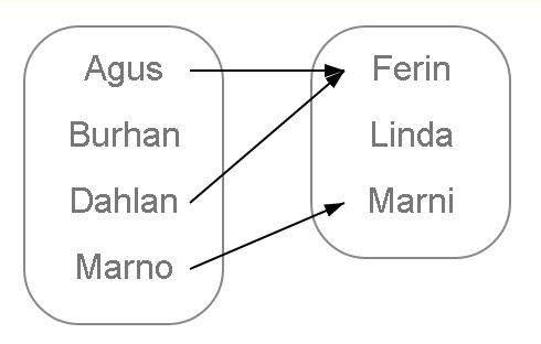 Lingkari elemen yang menyebabkan tidak unik, dan kotaki elemen yang menyebabkan tidak total.